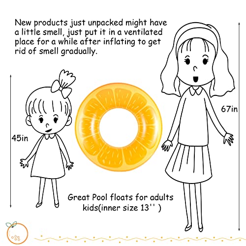 - Inflated inner size for the rings is 13 inches. These fruit pool floats are super cute, perfect size which is good for adults and kids. Recommended for ages 9 years and older.
