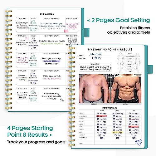 - Set and Achieve Goals – Set up to 10 fitness goals and track your progress towards them. This workout log provides space to note your goals and track your performance, enabling you to stay motivated and focused on your fitness journey.