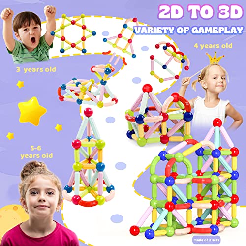 • 【STEM TOYS FOR 3+ YEAR OLD 】Hands-on ability promotes brain development. Let kids build SELF-CONFIDENCE as they explore different shape, whether they succeed or fail. Challenges from 2D to 3D, build as big as desired by adding more magnet stick toys. Magnetic toys are benefit for sensory, montessori, building, preschool education, problem-solving and more.
