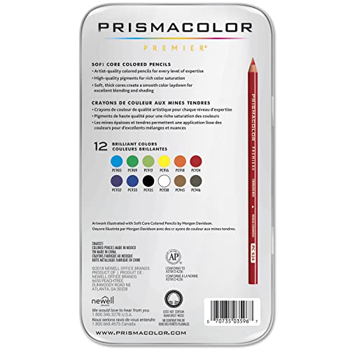 Prismacolor Premier Colored Pencils, Soft Core, 12 Pack
