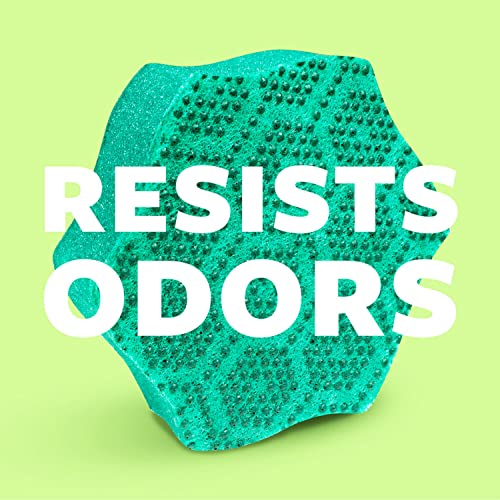 Details: Power through your toughest messes without trapping food. Scotch Brite Advanced Scrub Dots Heavy Duty Scrubbers deliver 3X the scrubbing power, resist odor and rinse clean. The easy to hold hexagonal shape and thick scrubbing pad are designed to work hard and last long. From America’s #1 sponge brand.