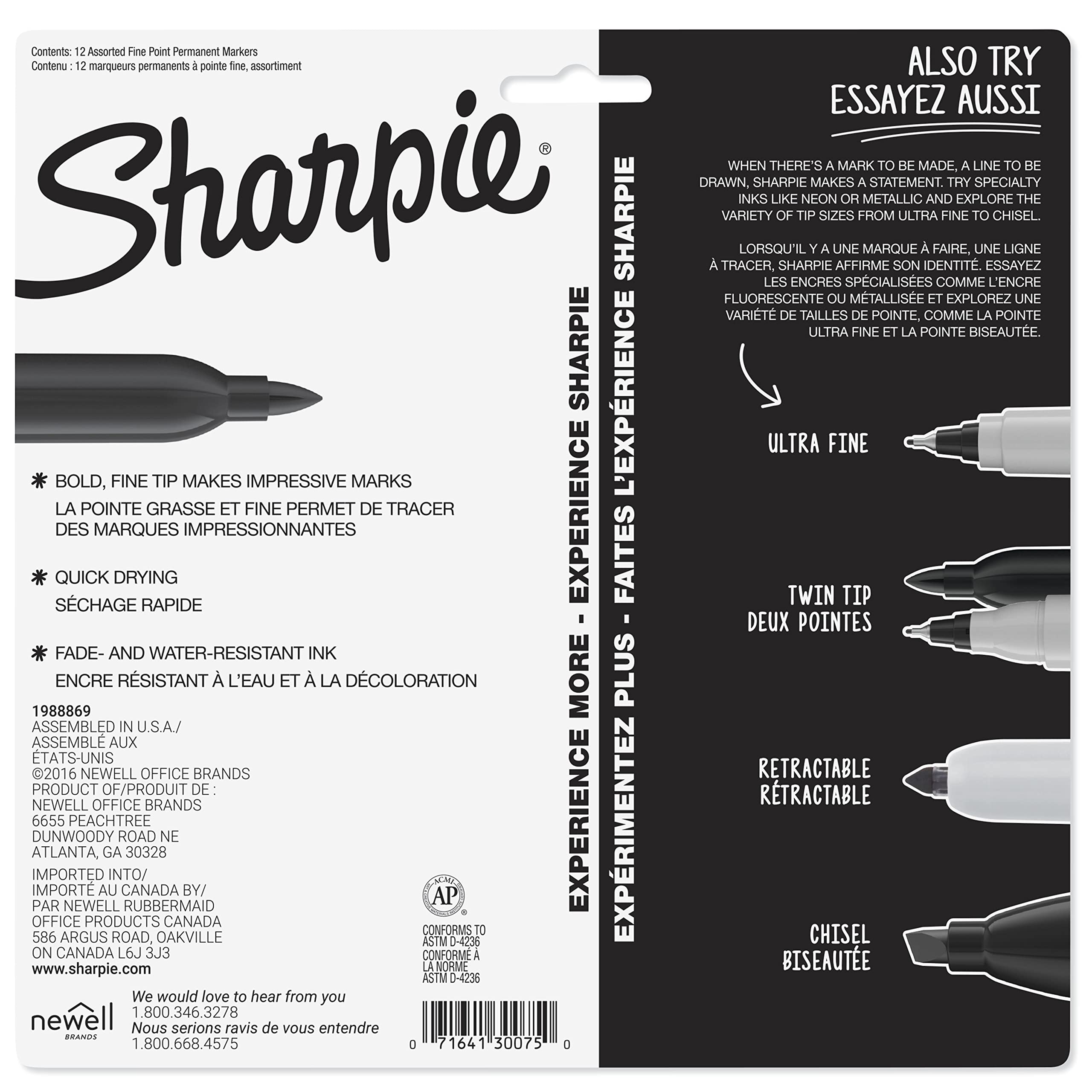 Sharpie Fine Point Permanent Marker, Assorted Colors, 12 count